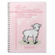 Um cordeiro doce está parado sobre um pedaço de grama com a palavra Batismo debaixo dele. Personalize este item de presente cor-de-rosa para o Batismo da sua neta excelente. Adicione o nome dela e a data em que ela foi batizada como uma bela manutenção!