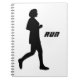 A pintura em silhueta preta de uma corredora com a palavra RUN é impressa em cadernos personalizados. Esta pintura foi inspirada por um corredor entre países. Comprar na PositiveAffirmation no Zazzle.