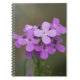 Flores Silvestres Roxas Dames Rocket "Hesperis matronalis" Caderno. Tirada logo após um chuveiro de chuva, as gotas de água adicionam à beleza das minúsculas flores silvestres roxas.