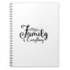 Família É Tudo Citação Do Notebook. Tipografia negra com espiral. Design do Simple Living.