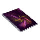 Notebook Fantasy Purple Flower, composição fractal original que enfatiza uma forma abstrato feita de cores intensas e contrastes. A cor dominante do design é roxa, que exibe uma variedade de tons de magenta claro a roxo escuro. O uso das cores é especial, pois combina de forma ousada os vários tons de roxo com tons de laranja e amarelo claro, além de realces luminosos. No geral, a composição lembra uma flor de fantasia abstrato com uma corolla rotativa espetacular.