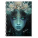 Misteriosa criatura gótica do mar verde olhou bela sereia com coroa de conchas e escamoteia azul face debaixo d'água. Presente ideal para alguém especial neste natal