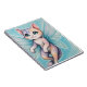 This notebook features a cute, detailed illustration of a fantasy kitten with pastel-colored fur and large, iridescent teal butterfly wings, floating against a light blue, starry background.