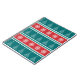 Ilustração feliz de Natal com árvore de Natal e decoração de flocos de neve em fundo vermelho, branco, azul e turquesa listrado