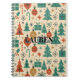 Notebook divertido e festivo vermelho e verde inspirado na design moderna do século médio. Possui estereótipos atômicos, formas geométricas, ornamentos retrorreflectores, pinheiros e elementos doces — perfeito para jornalismo de inverno, doação de presentes ou planejamento em estilo de safra.