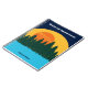 Belo reencontro familiar no lago férias caderno azul com as bonito águas azuis sob a floresta de árvores e o pôr do sol laranja legal. Diário de viagem de acampamento bonito para o seu grupo de excursões naturais ou selvagens.
