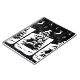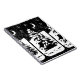 Impressão de lino preto e branco de uma pacífica cena de inverno: uma árvore de abeto solitário em pé em uma paisagem nevada à noite, com um céu estrelado acima.