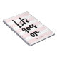 Um notebook bonito e giro com caligrafia moderna e listras rosa e brancas. Este caderno motivacional pode ser personalizado. Este design está disponível em várias cores e produtos. "A vida continua."