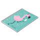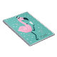 flamingos cor-de-rosa e flocos de neve num fundo verde-menta.