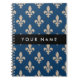 Caderno Espiral Fleur de Lis, Beige on Navy Blue, Royal, Your Name
