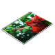 Uma flor de hibisco vermelha com efeito de jornal aplicado à imagem.