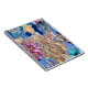 Uma colagem complexa combinando ilustrações anatômicas detalhadas do sistema circulatório, órgãos e esqueleto com orquídeas vibrantes azuis, rosa e roxas. Esta peça cria uma fusão harmoniosa e provocadora da ciência e da arte natural.