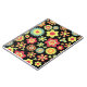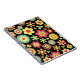 Um design floral atraente com flores estilizadas coloridas sobre fundo preto, o design também tem uma textura sutil de papel.
