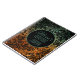 Um padrão floral dramático a na moda preto sobre uma floresta verde-rocha, coberto de um pano de fundo laranja verde onde no centro está um círculo negro onde você pode personalizá-lo com um logotipo ou nome. Víbas encantadoras.