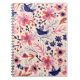 Caderno Espiral Floral, pássaros, padrão contínuo de colheita.