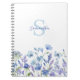 Bloco de notas floral de cor de água de flor azul personalizado. Fácil de mudar o texto. Perfeito para escola ou escritório.