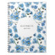 Caderno Espiral Flores azuis em aquarela. Padrão floral feminino