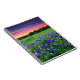 Esta incrível foto do Getty Images apresenta uma pastagem do Texas cheia de bluebonnets no pôr do sol.