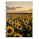 Esta incrível foto do Getty Images mostra um campo de girassol no pôr do sol.