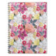 Caderno Espiral Flores cor-de-água, cor-de-rosa.