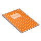 Um padrão floral vibrante e inspirado no retro, apresentando pequenas flores de bege suave em tom de pêssego, espaçadas uniformemente sobre um fundo laranja rico. Cada flor é cercada por pequenos pontos.