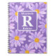 Caderno Espiral Flores de margarida púrpura floresce monograma per