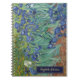 Fonte de tipografia personalizada, simples, elegante, bonita e sofisticada em dourado falso, para amantes de flores / temas florais / natureza / arte vintage e conhecedores de Van Gogh, caderno espiral com uma bela pintura colorida e detalhada em tela a óleo vintage, de Vincent van Gogh, com íris e flores sazonais em um jardim. Para personalizar, basta digitar seu nome / monograma / iniciais. Ótimo para casa, escritório, negócios, escola, faculdade, universidade. Faz um presente personalizado maravilhoso para seus entes queridos, filhos, filho, filha, sobrinha, sobrinho, mãe, pai, marido, esposa, irmão, irmã, noiva, noivo, avô, avó, artista, pintor, familiares e amigos, para ano novo, aniversário, natal, feriados, formatura, planejamento de casamento e muito