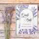 Um fundo branco na moda, decorado com uma armação de flores de lavanda violeta. Personalize e adicione um nome e um título/evento. O Livro de Convidados é escrito com um script com na moda.
