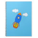 Caderno Espiral Foguete Espacial do Cartoon no Céu Azul
