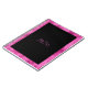 Um notebook com um elegante design de folha de alumínio preto e rosa quente.