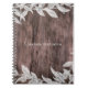 Caderno Espiral Folhas brancas e prateadas e madeira russa elegant