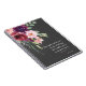 Um belo caderno feminino cristão, com um arranjo floral de cor d'água em cor rosa, roxo e burgundy com folhas verdes sobre fundo escuro de cinza.O verso popular de Bíblia do Proverbs 31:25 Força e honra são suas roupas; Ela se regozijará no tempo que se avizinha" (NKJV) em letra branca, escrita à mão, está no canto inferior direito. Este texto é editável Personalizar com o seu nome. Faz um presente de excelente.