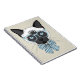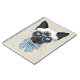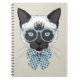 Características que deste design um gato Siamese se vestiu em um par de vidros azul e de laço checkered.