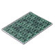 Impresso com imagem retangular em branco, a cor escura em verde e formas quadradas pequenas. Tonalidades ligeiramente escuras de carbono tipo visto ou como se estivesse sujo.