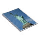 Uma fotografia espantosa da Estátua da Liberdade, enquadrada contra um céu azul claro, captura o símbolo icônico da liberdade em toda a sua glória majestosa.