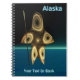A brown-toned fractal image suggesting a highly-stylized Inuit hunter, wearing traditional fur clothing, holding a harpoon with an ivory head. The image is superimposed on a background depicting the dark polar winter. Text reading "Alaska" appears in glowing blue and white. Customize by adding your own additional text.