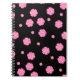 Caderno Espiral Fundo escuro, flores rosa estilizadas e brilhantes