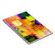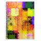 Design geométrica moderna e ranhosa, utilizando quadrados e círculos abstratos coloridos. Um caleidoscópio de cores constitui este design contemporâneo.