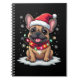 Caderno Espiral Funny French Bulldogs Christmas Santa Hat Lights S