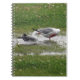 Este legal notebook tem uma imagem brilhante de duas gaivotas na frente. Uma delas está sentada sobre uma poça enquanto outra está resfriando seus pés - pelo menos essas gaivotas estão felizes por estar chovendo!!!