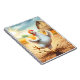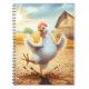 Galinha feliz dançando na sujeira com sol brilhante da manhã e celeiro de fazenda