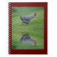 Este notebook mostra Janet o frango subindo uma colina em uma fazenda em Connecticut.