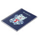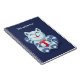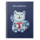 Caderno personalizado com coração com uma ilustração digital fofa que retrata um gato azul feliz e apaixonado. O pequeno felino está sorrindo e segurando um grande coração vermelho.