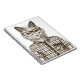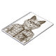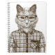 Este design apresenta um gato vestido de camisa flanela e óculos.