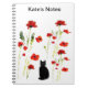 Um design floral de gato giro com papoilas vermelhas, Este gato preto e trabalho de arte de papoila floral foram criados das minhas pinturas originais de vidro. Faz um belo presente para ela com a opção de personalizar com um nome. Copyright Annabel Potter