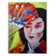 Caderno Espiral Geisha Japonesa com leque arte original em aquarel