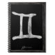 Caderno Espiral Gemini martelava prata estilizada símbolo de astro