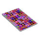 A vibrant geometric pattern composed of colorful squares and intersecting circles creates a dynamic and mesmerizing effect. The intertwining shapes are filled with gradients of green, blue, red, and yellow, generating a kaleidoscopic visual experience.