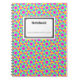 Um notebook com um design de estilo rotulado e um padrão ou imagem embaixo. O estilo tradicional inspirado nos livros antigos alemães e europeus. Esse design também pode ser mais personalizado. Um divertido design geométrico original, colorido, em vermelho, âmbar e ciano.