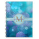Caderno Espiral Girly Aqua Blue Bokeh Dourado Glitter Monographic